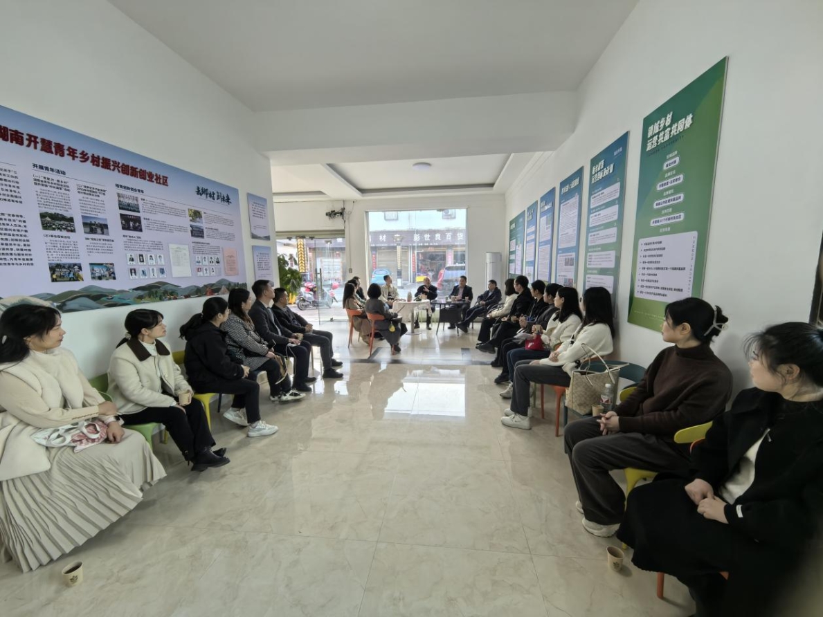 开慧镇板仓村落乡村发展有限公司负责人周恩辉热情地接待了大家,并详细介绍了公司打造 “板仓村落” 公共品牌的创新历程与战略布局。座谈交流会上,同学们围绕“三位一体”乡村运营新模式(首席乡村运营官陪跑 + 农村职业经理人培育 + 镇企合作联营)展开了深入的学习与讨论,积极剖析这种创新模式在整合资源、激发乡村内生动力方面的独特优势与实践挑战,探讨如何进一步提升板仓村落的整体品牌形象与市场竞争力,如何借助开慧镇丰富的红色文化资源与自然资源扩大其在全国乃至全球的知名度,以及如何更加高效地整合政府、企业、高校、社会组织等各方资源,推动乡村经济多元化发展,实现乡村产业振兴、人才振兴、文化振兴的协同共进。