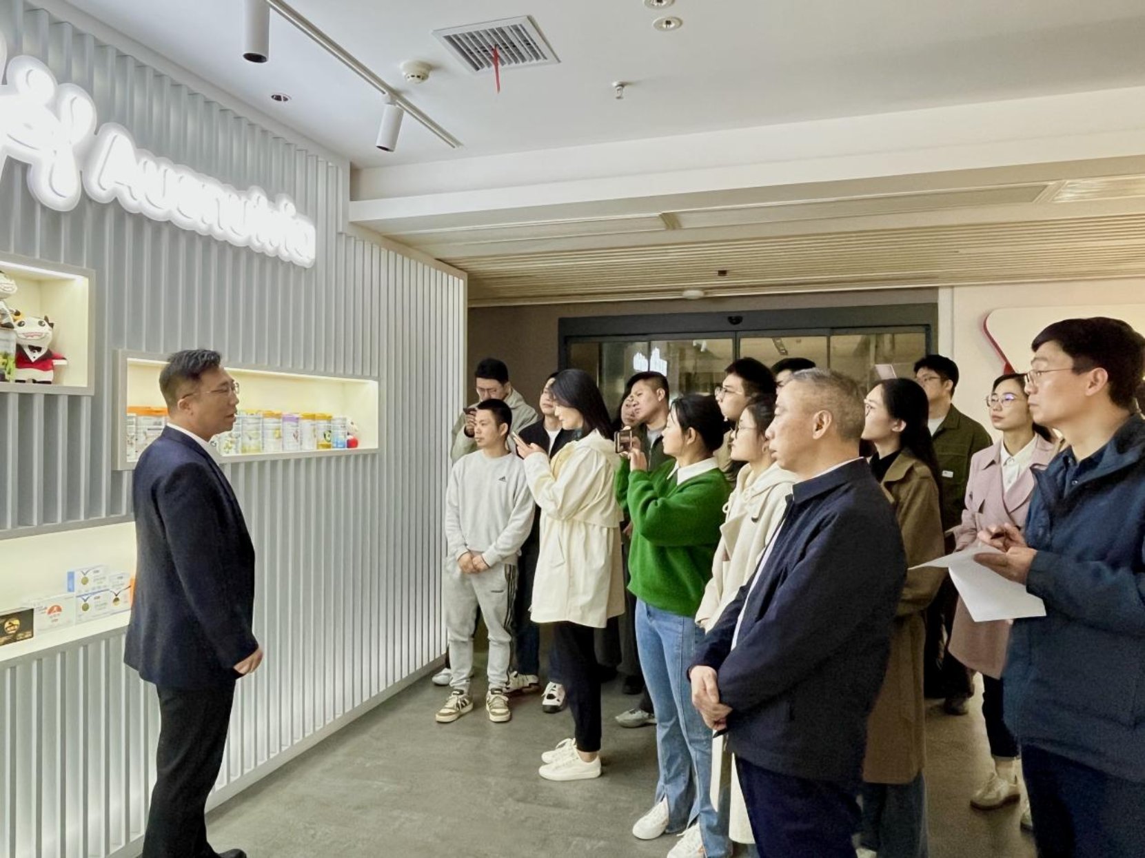 全体师生参观了澳优“企业之家”和“澳优大学堂”,澳优乳业党委副书记、工会主席杨琛为师生们详细介绍了公司在党建引领、发展历程、品牌建设、人才培育、人文关怀、社会责任等诸多领域的深耕成果。