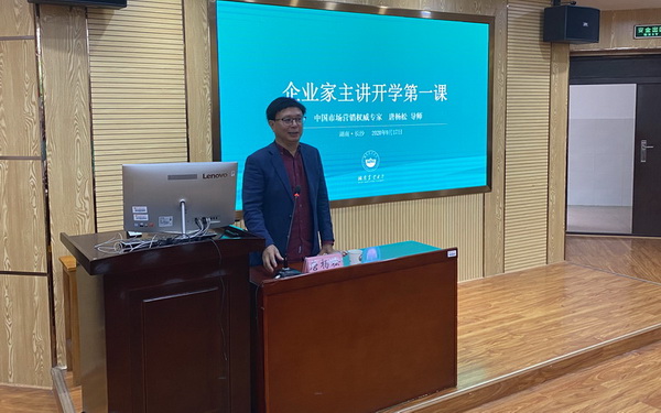 2020年9月17日上午,商学院在十教北102为2020级全体研究生新生举办了一场“企业导师主讲开学第一课”的创新创业讲座,旨在扩宽研究生的创新视野、丰富研究生的创业思维,本次讲座由中国市场营销权威专家唐杨松董事长主讲,商学院院长杨亦民教授主持。商学院部分导师代表及全体研究生新生参加了此次讲座。