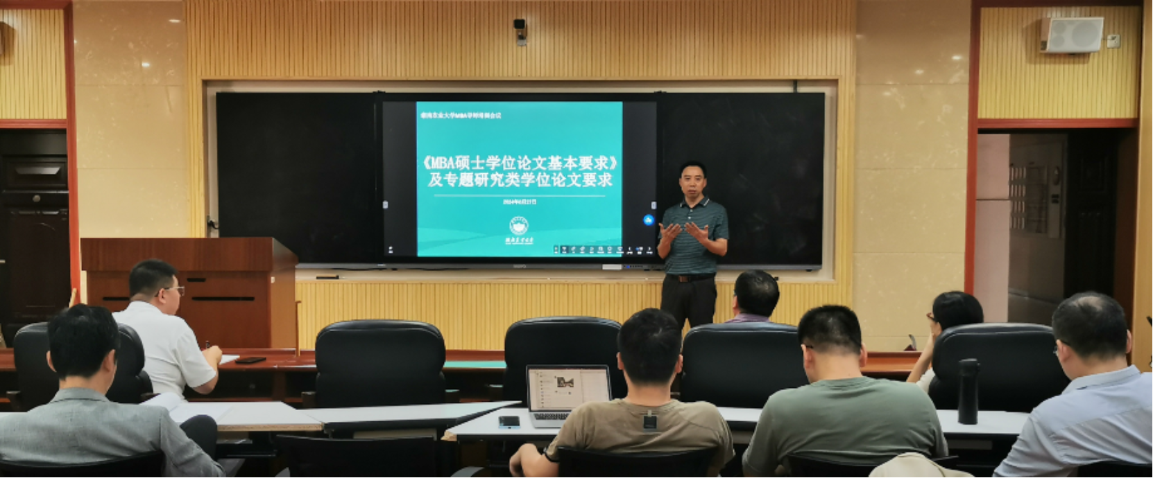 首先,MBA学位点负责人莫鸣副院长带领大家一起全面学习了2024年全国工商管理专业学位研究生教育指导委员会发布的《关于发布工商管理专业学位类别硕士学位论文基本要求(试行)的通知》,并结合他在广州参加首期全国MBA论文导师研修班的学习体会,从基本原则、选题要求、选题标准、专题研究类论文撰写要求等方面详细阐述了MBA硕士学位论文的基本要求,对专题研究类论文的基本定位、考核内容、评价要素、基本要求和评价侧重点进行了重点解读。