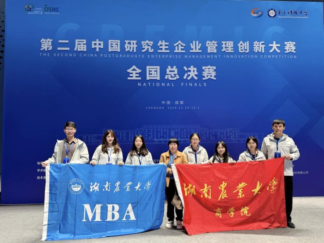 来源: 作者: 浏览次数:次2024年12月1日,我院石巧君、莫鸣、李文涛老师组织的“犇犇队”(MPAcc学生陈缘、黄思悦、龚洵香)和“朴诚奋勉,求实创新队”(MBA学生田紫妍、刘宇思琳、石凯)在电子科技大学参加中国研究生企业管理创新大赛全国总决赛中勇夺双冠,均获一等奖。