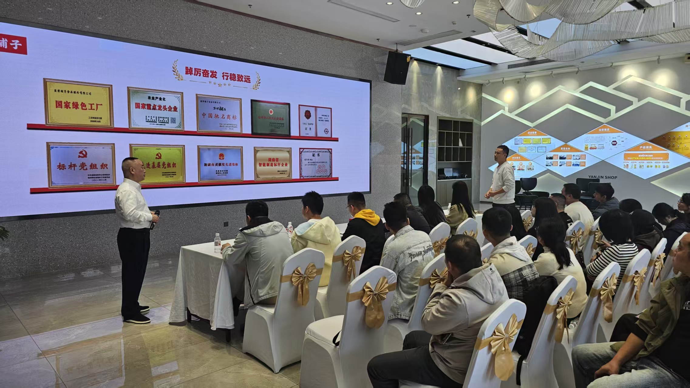 在盐津铺子食品股份有限公司,学员们在该公司监事会主席王勇先生的引导下,先后参观了魔芋爽、面包、果冻等产品智能制造生产线,近距离感受休闲食品从原料加工、自动化生产到品质检测的标准化流程以及产品质量的精细化管控。